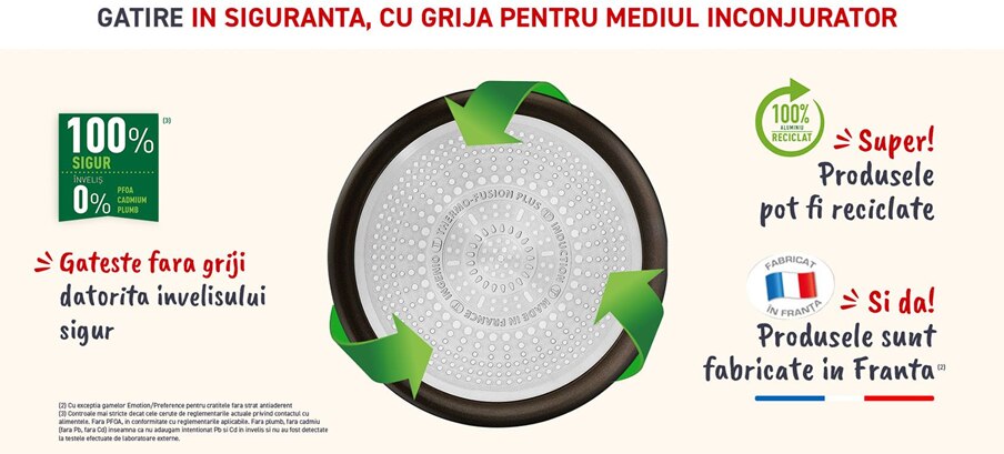 **** Control foarte strict in conformitate cu legislatia, pentru produse ce intra in contact cu alimentele. Nu contine PFOA, plumb si cadmiu